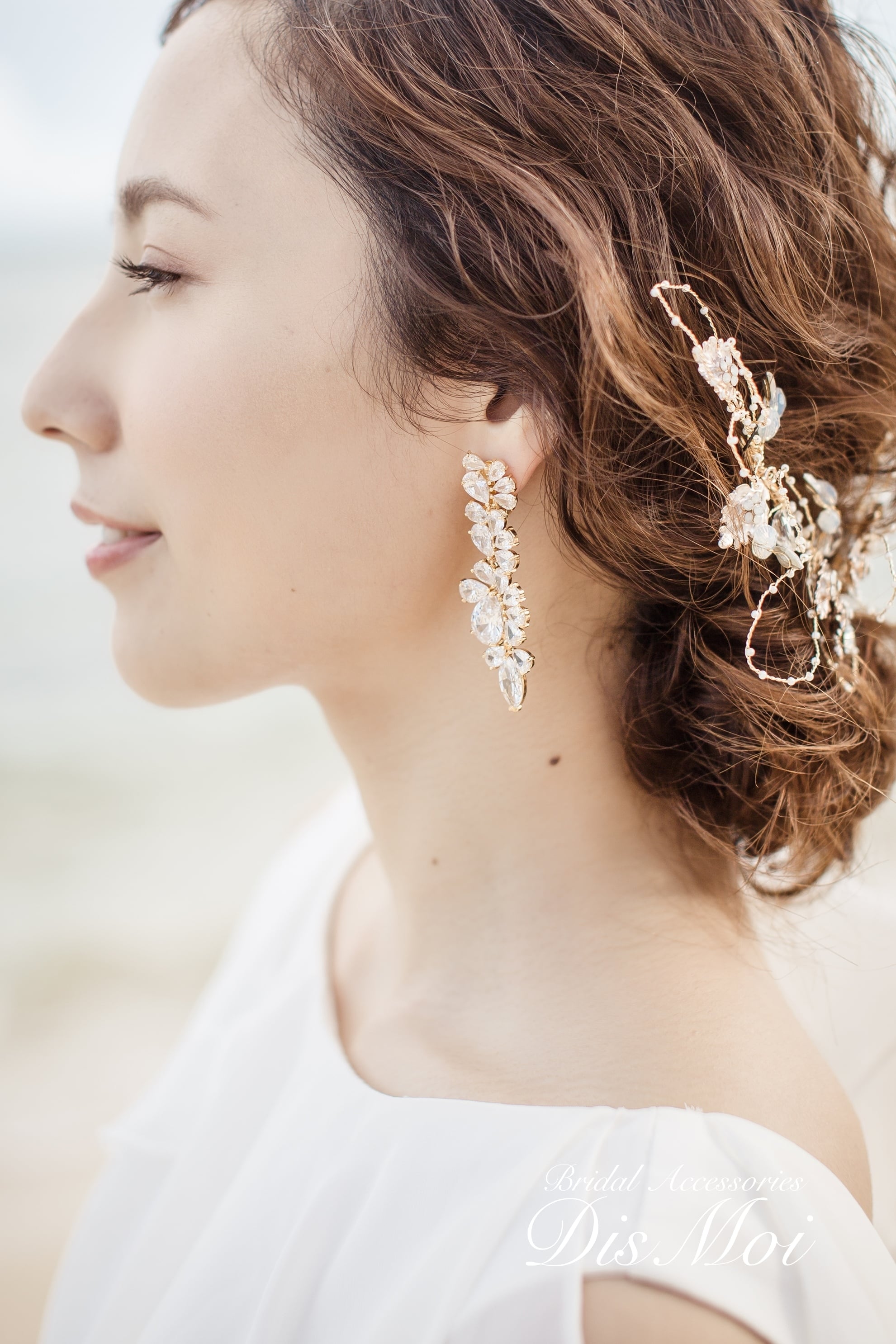 華やかながらシンプルに仕上げているので、ヘアスタイルやドレスを選ばず合わせやすいデザイン。