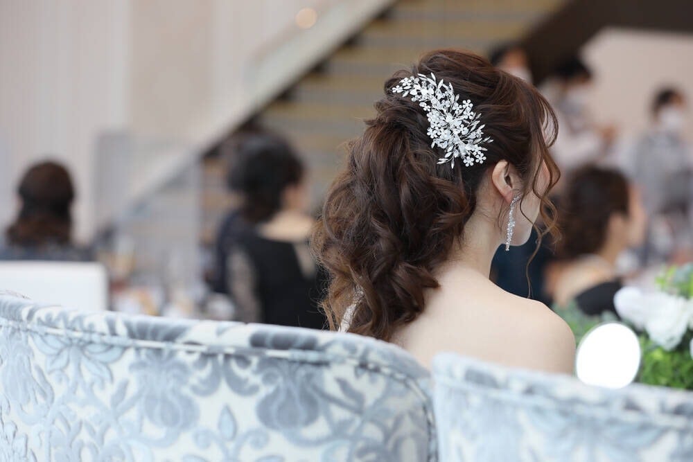 様々な種類のクリスタルやビーズを使用したヘッドピースです。