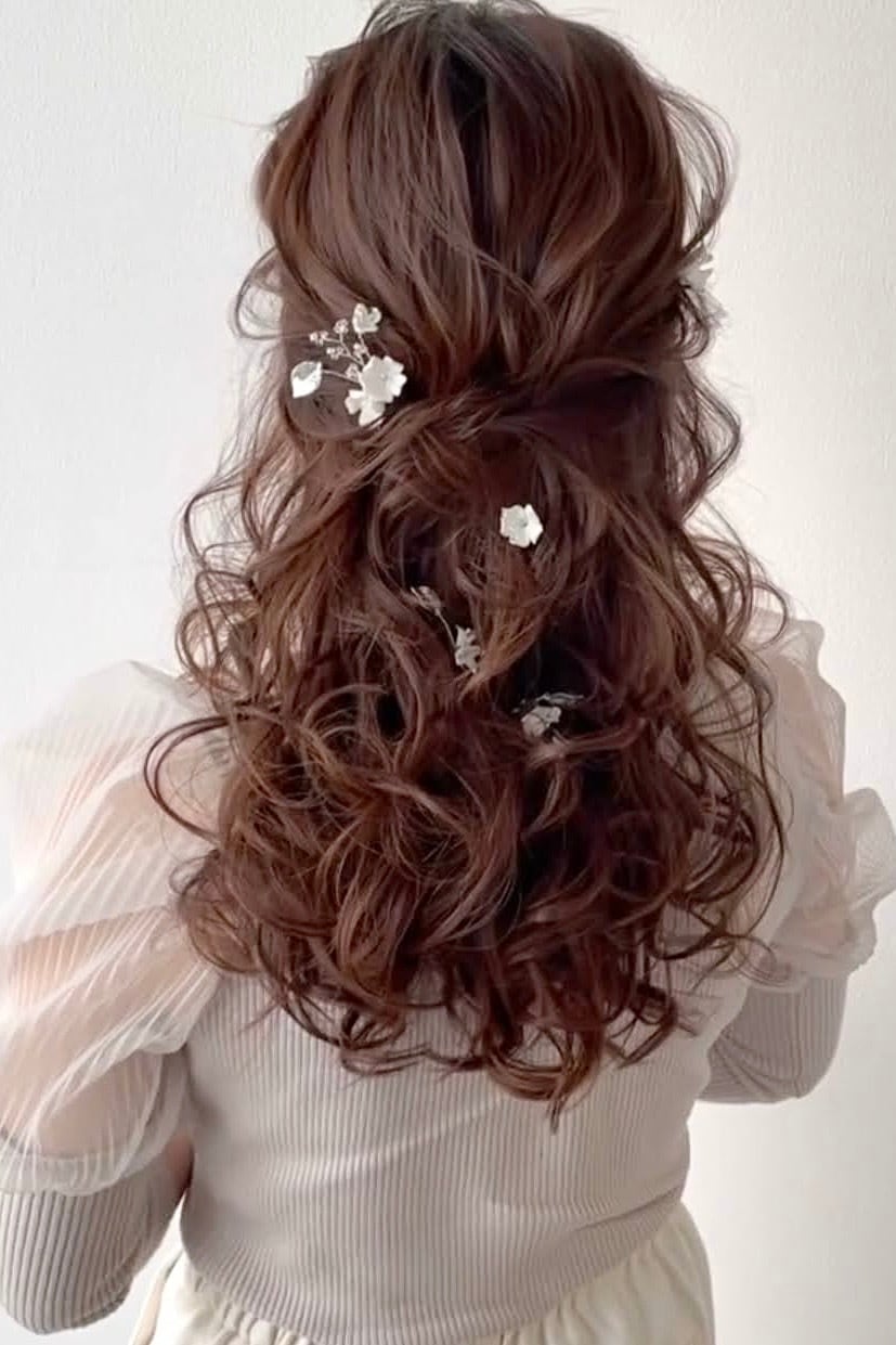 ヘアコームとヘアピンの合計6点セットとなりますので、お好きな位置にランダムに着用いただけます。