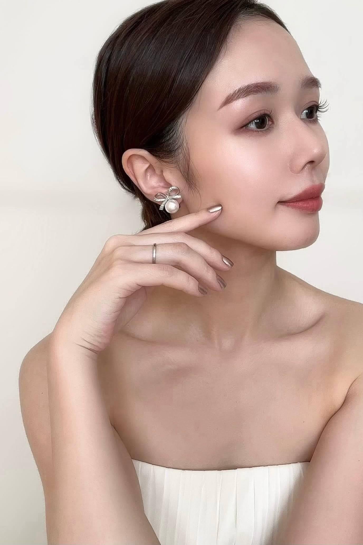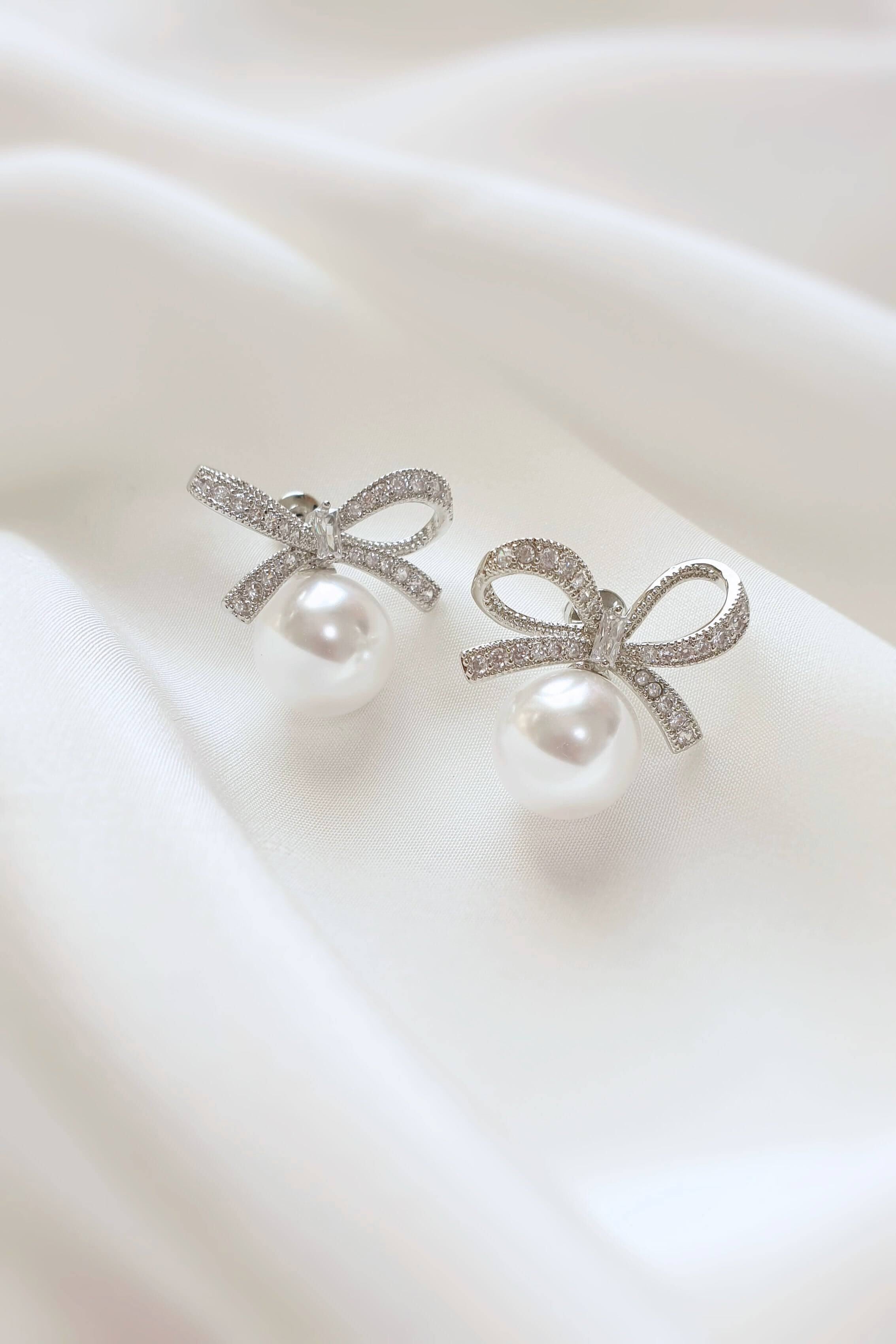 ジルコニアストーとイミテーションパールを使用したピアスです。