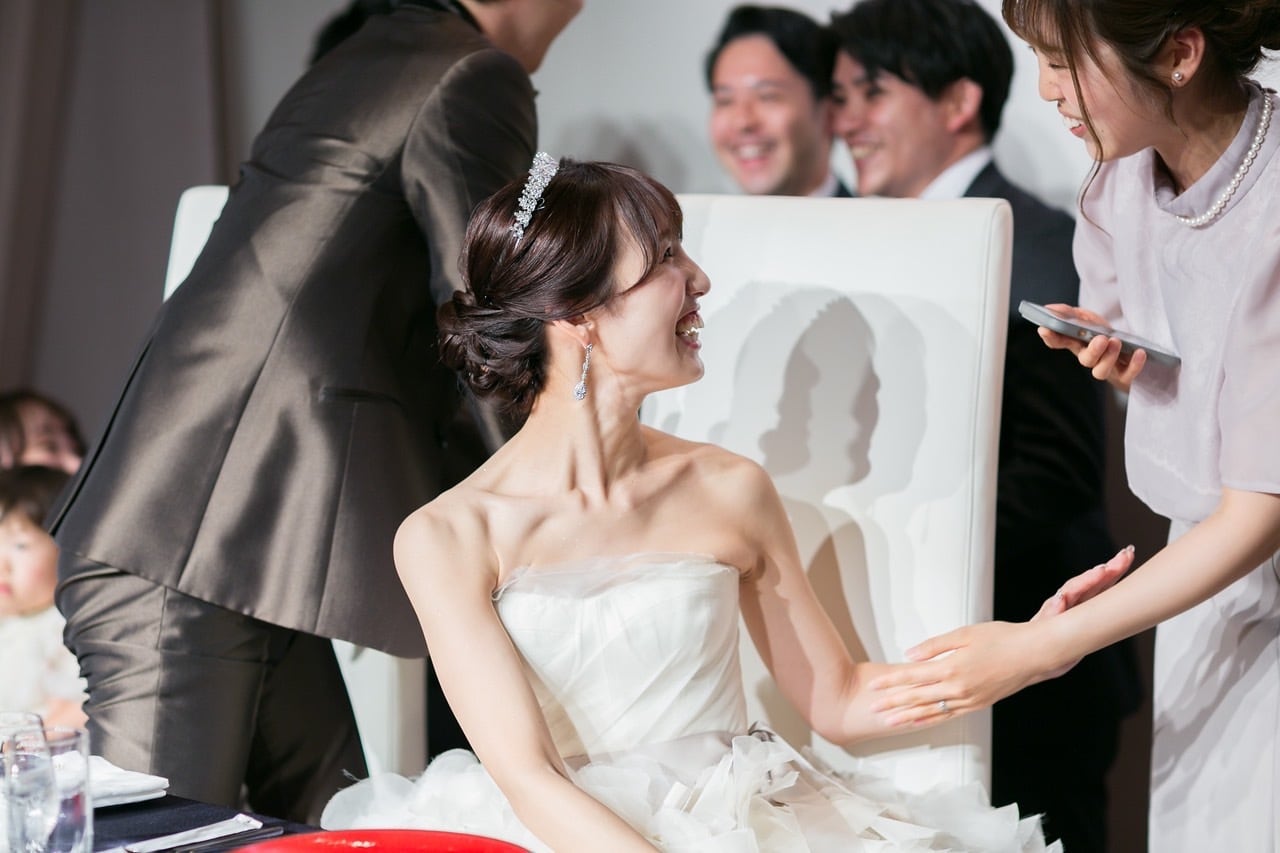 適度な高さのあるデザインで、華やかさを引き立てながらも、上品さを演出。